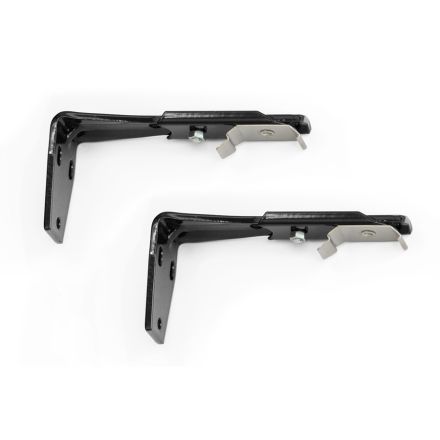 2 Stück Vertikalvorhang Wandträger in der Farbe schwarz, passend für Decomatic Lamellenschienen.. Der Wandabstand ist variabel von 108 bis 156 mm verstellbar.